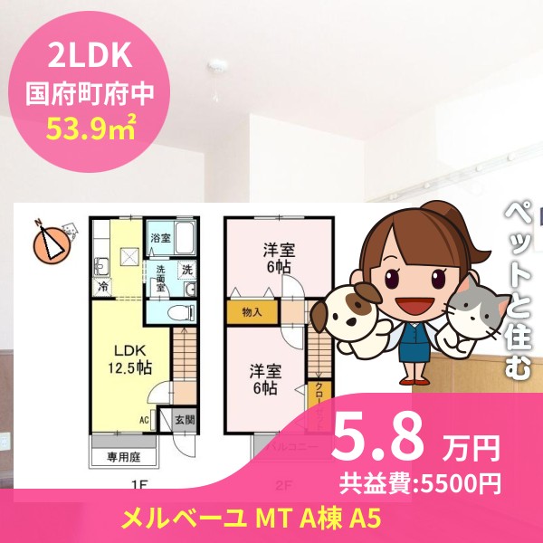 月額賃料は5.8万円で、共益費は5500円です