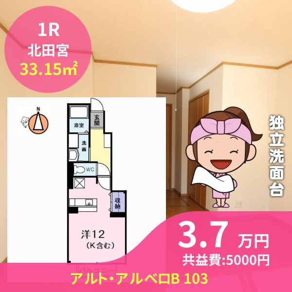 月額賃料は3.7万円で、共益費は5000円です