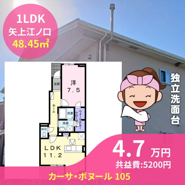 月額賃料は4.7万円で、共益費は5200円です
