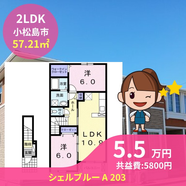 小松島市小松島町字北浜のシェルブルー A 203をご紹介します