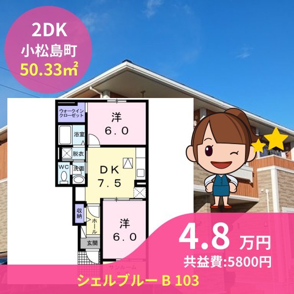 小松島市小松島町字北浜のシェルブルー B 103をご紹介します