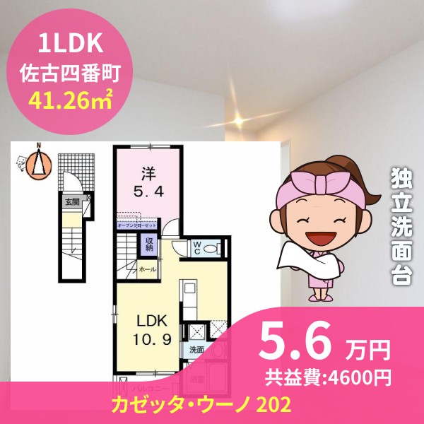 月額賃料は5.6万円で、共益費は4600円です