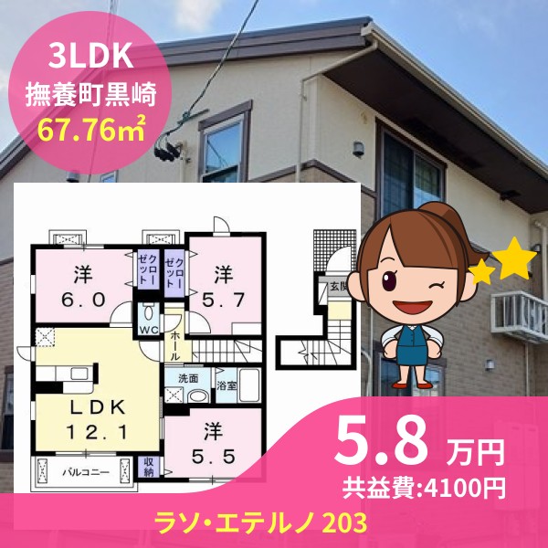 間取りは3LDKで67.76㎡の広さです
