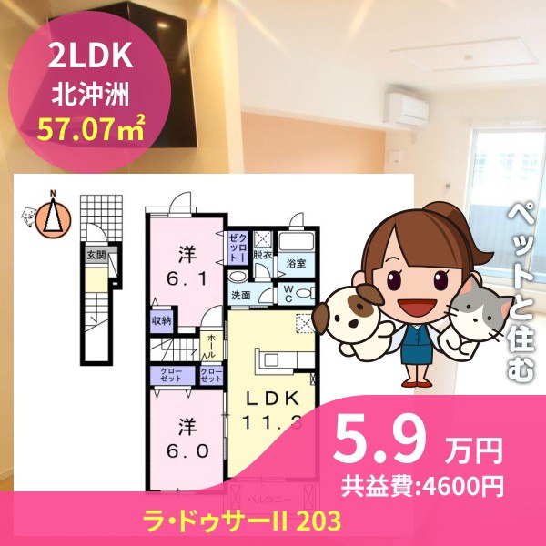 月額賃料は5.9万円で、共益費は4600円です
