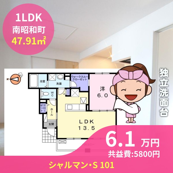月額賃料は6.1万円で、共益費は5800円です