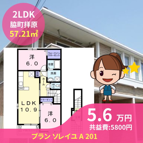 間取りは2LDKで57.21㎡の広さです