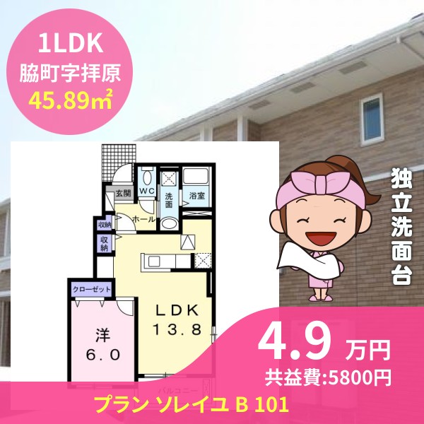 美馬市脇町拝原のプラン ソレイユ B 101をご紹介します