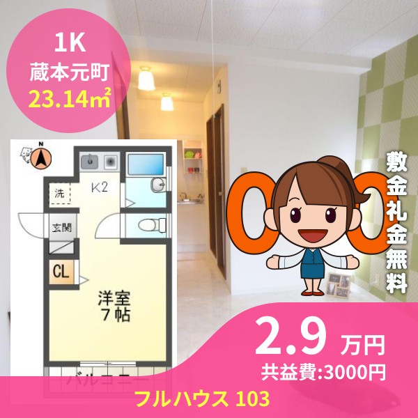 蔵本公園が800mにあり、最寄りのスーパーはダイレックスで徒歩12分、ファミリーマートも徒歩6分です。