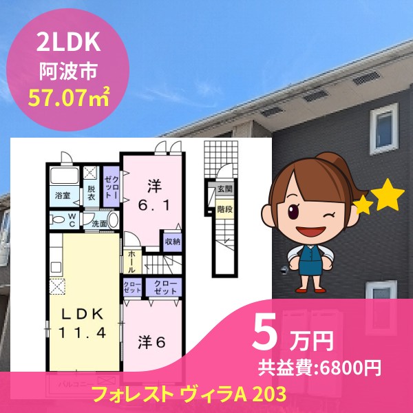 阿波市市場町香美のフォレスト ヴィラA 203をご紹介します