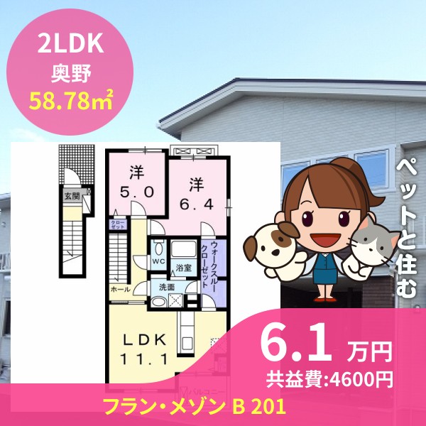 月額賃料は6.1万円で、共益費は4600円です