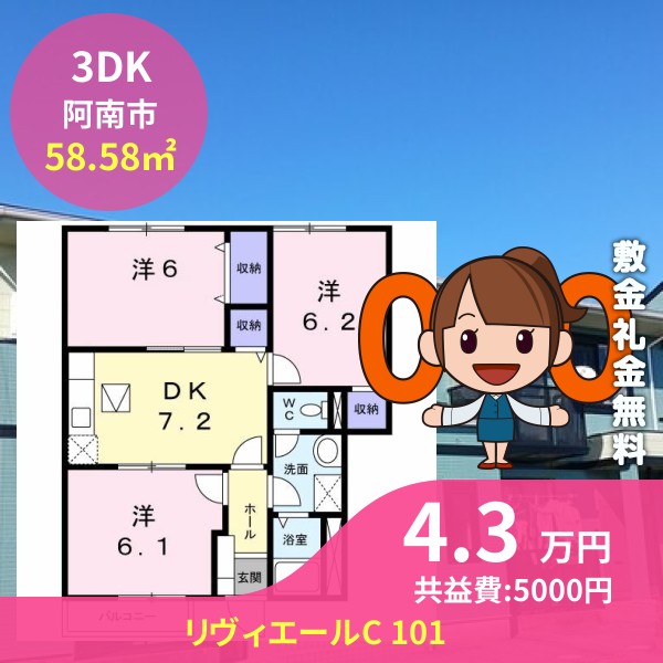 阿南市那賀川町上福井のリヴィエールC 101をご紹介します