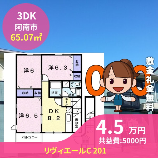 阿南市那賀川町上福井のリヴィエールC 201をご紹介します