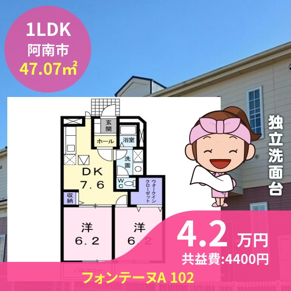 阿南市那賀川町上福井のフォンテーヌA 102をご紹介します