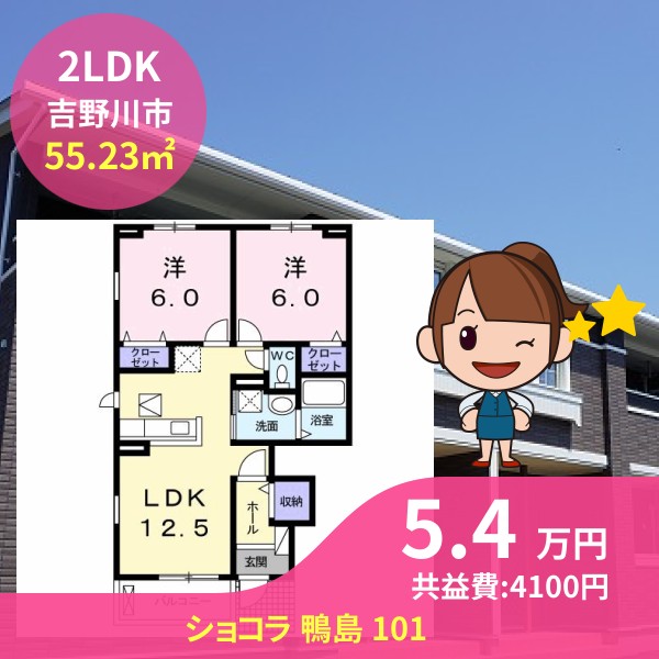 間取りは2LDKで55.23㎡の広さです
