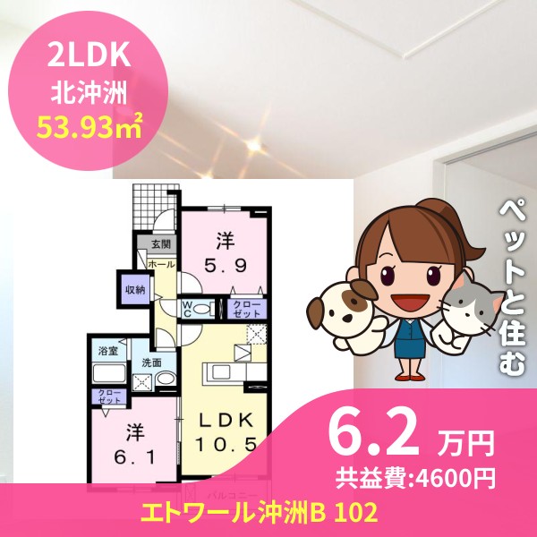 月額賃料は6.2万円で、共益費は4600円です