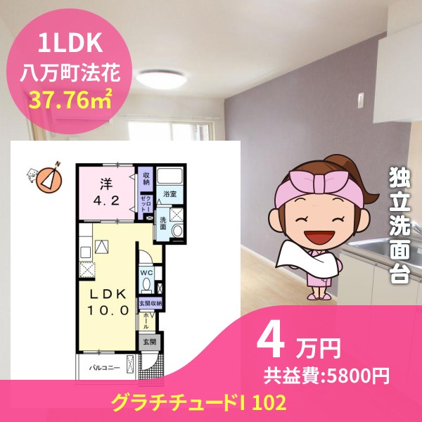 間取りは1LDKで37.76㎡の広さです