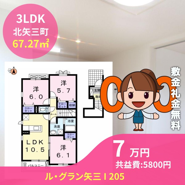 徳島市北矢三町のル・グラン矢三 I 205をご紹介します