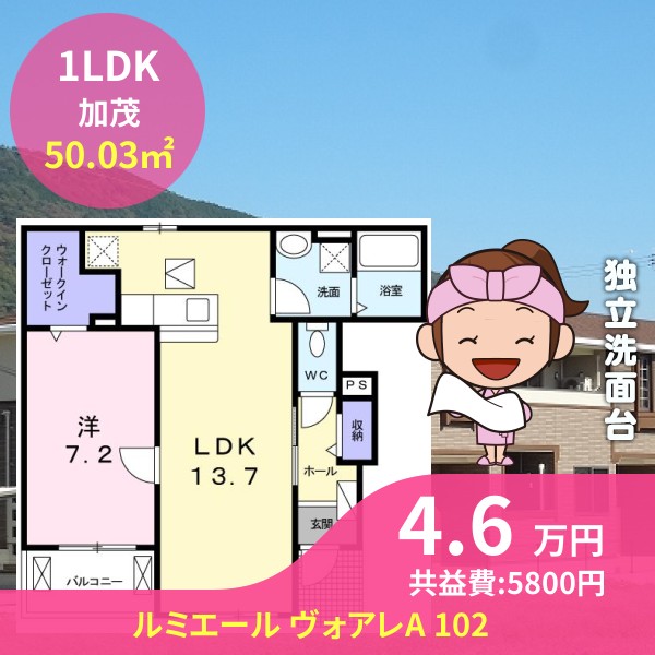 女性に特に喜ばれる独立洗面台のあるお部屋です