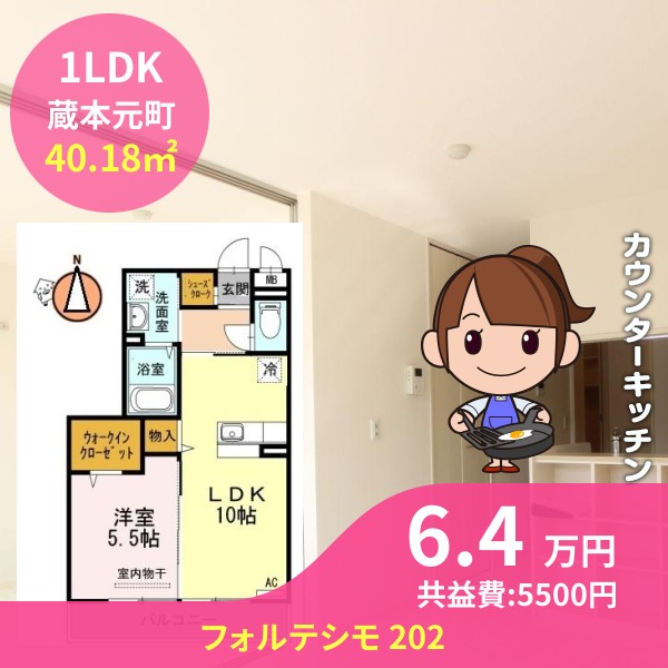間取りは1LDKで40.18㎡の広さです