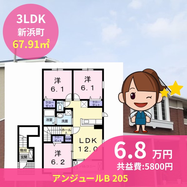 間取りは3LDKで67.91㎡の広さです