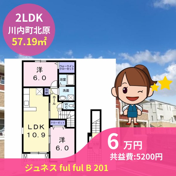 徳島市川内町北原のジュネス ful ful B 201をご紹介します