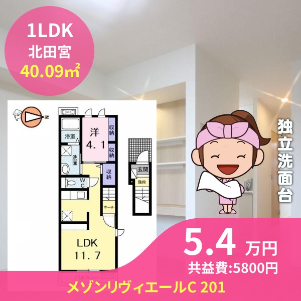 月額賃料は5.4万円で、共益費は5800円です