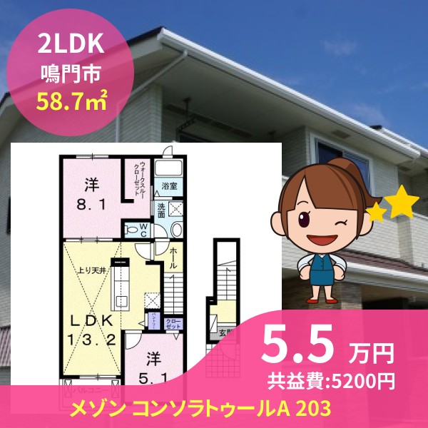 鳴門市撫養町黒崎のメゾン コンソラトゥールA 203をご紹介します