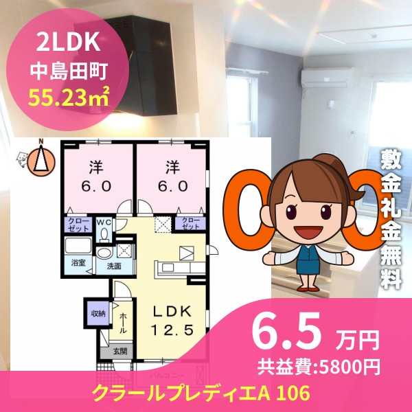 月額賃料は6.5万円で、共益費は5800円です