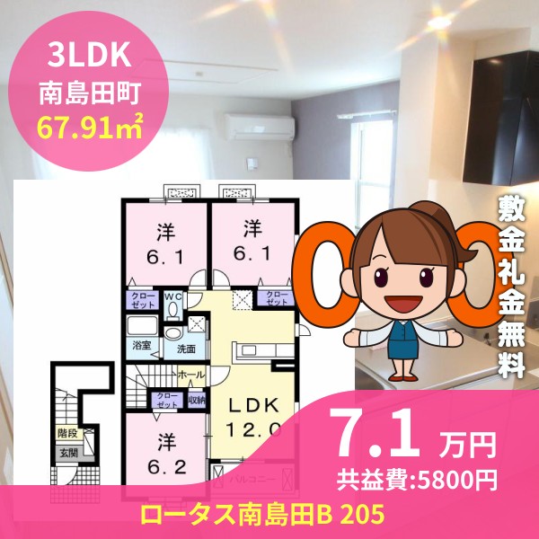 間取りは3LDKで67.91㎡の広さです