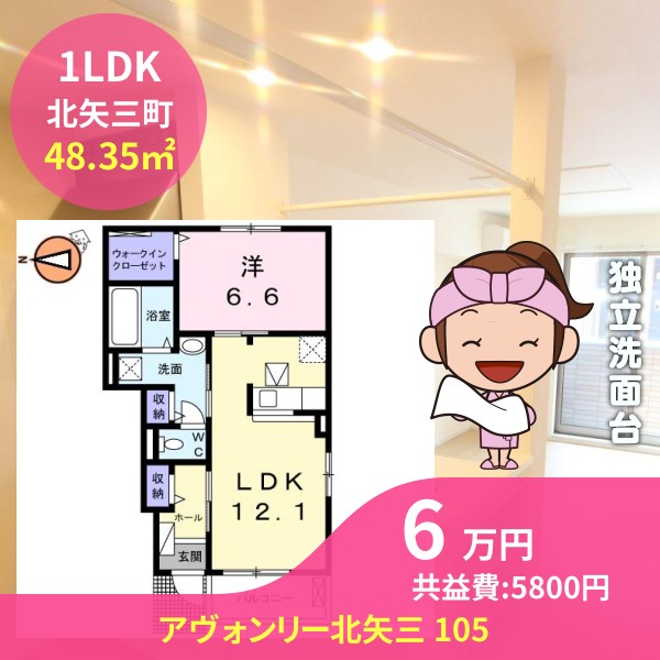 女性に特に喜ばれる独立洗面台のあるお部屋です