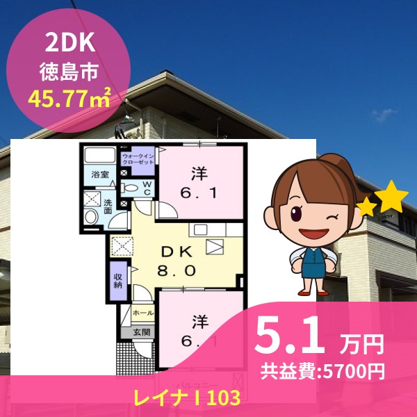 徳島市川内町加賀須野のレイナ I 103をご紹介します
