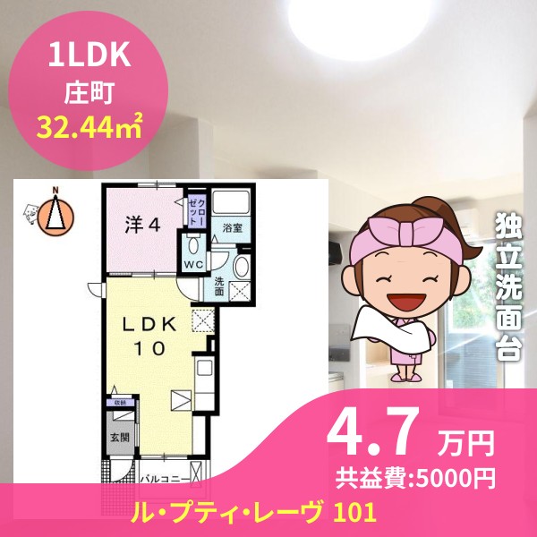 間取りは1LDKで32.44㎡の広さです