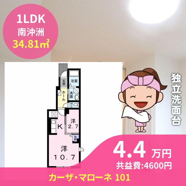 間取りは1LDKで34.81㎡の広さです