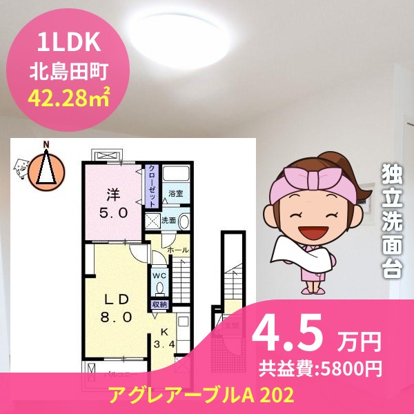 女性に特に喜ばれる独立洗面台のあるお部屋です