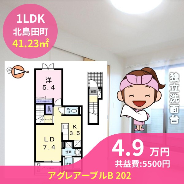 月額賃料は4.9万円で、共益費は5500円です