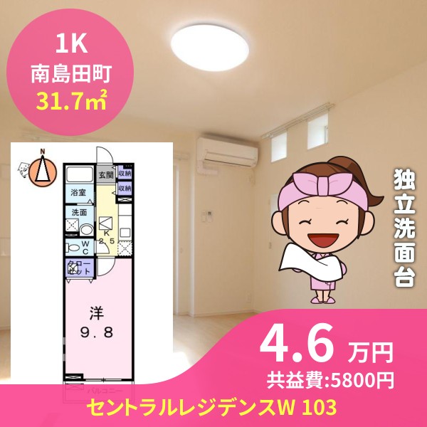 月額賃料は4.6万円で、共益費は5800円です
