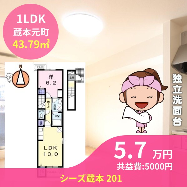 月額賃料は5.7万円で、共益費は5000円です