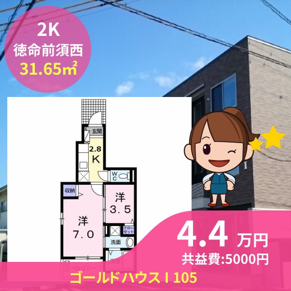 板野郡藍住町徳命前須西のゴールドハウス I 105をご紹介します