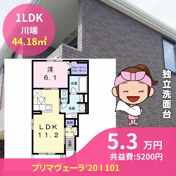 間取りは1LDKで44.18㎡の広さです