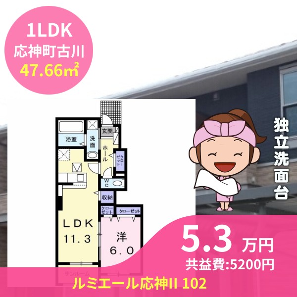月額賃料は5.3万円で、共益費は5200円です