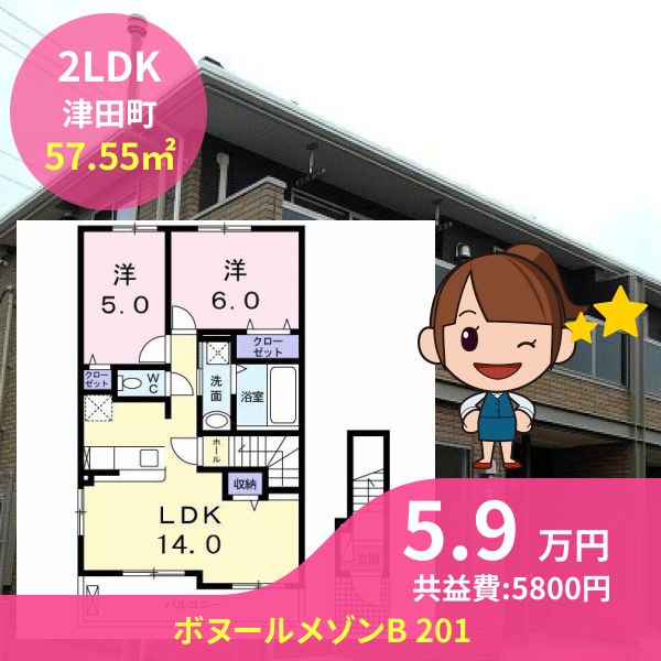 徳島市津田町のボヌールメゾンB 201をご紹介します