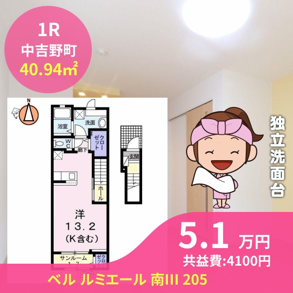 女性に特に喜ばれる独立洗面台のあるお部屋です