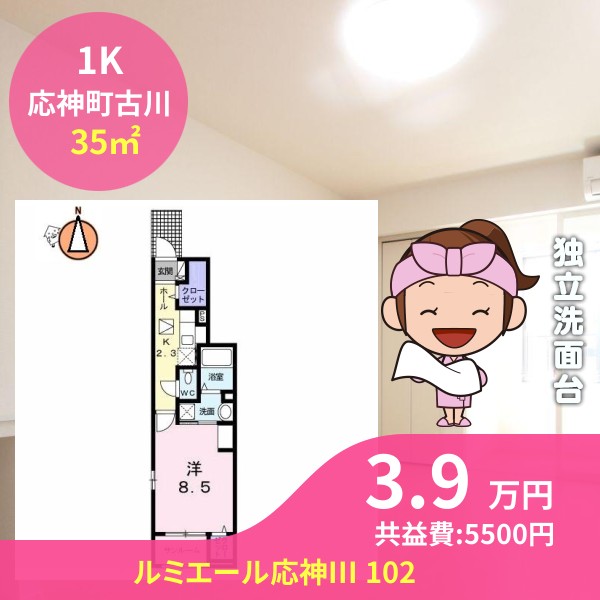 徳島市応神町古川のルミエール応神III 102をご紹介します