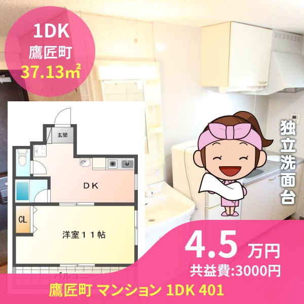 徳島市鷹匠町の鷹匠町 マンション 1DK 401をご紹介します