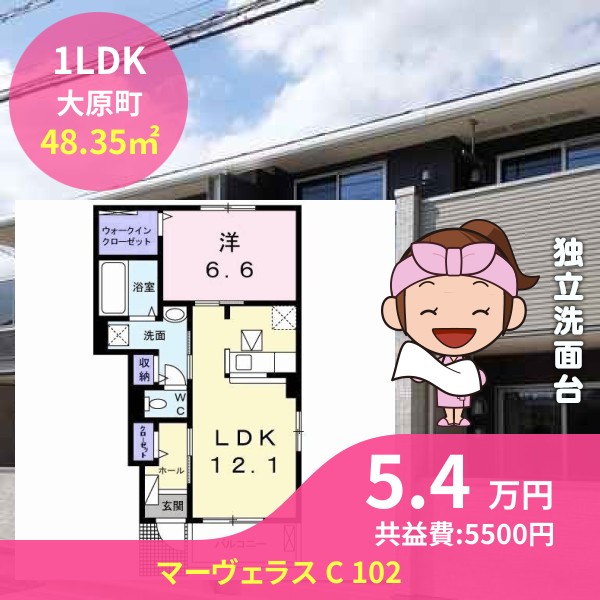女性に特に喜ばれる独立洗面台のあるお部屋です