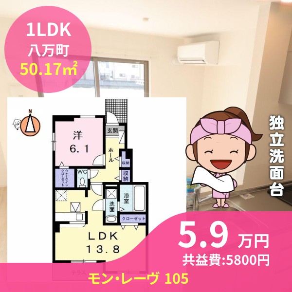 女性に特に喜ばれる独立洗面台のあるお部屋です