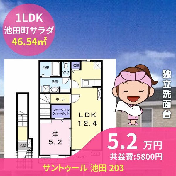 月額賃料は5.2万円で、共益費は5800円です