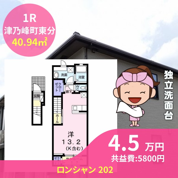 月額賃料は4.5万円で、共益費は5800円です