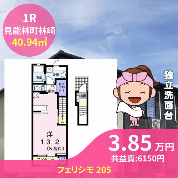 女性に特に喜ばれる独立洗面台のあるお部屋です