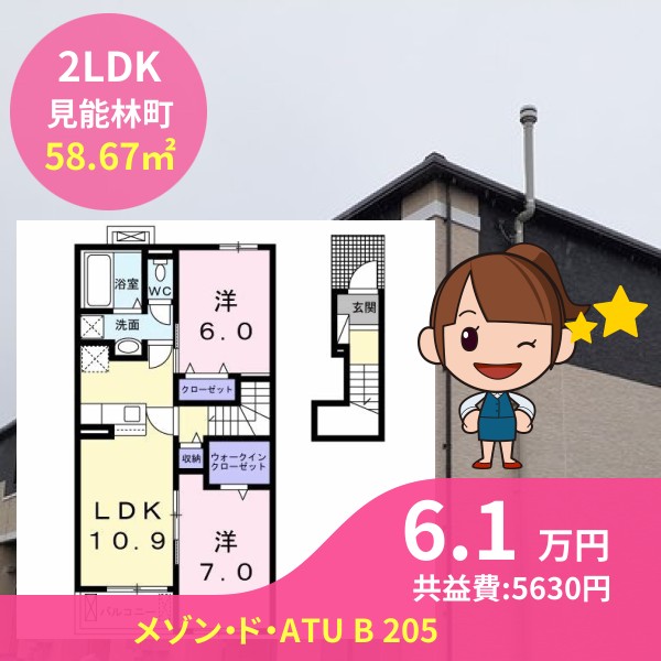 月額賃料は6.1万円で、共益費は5630円です